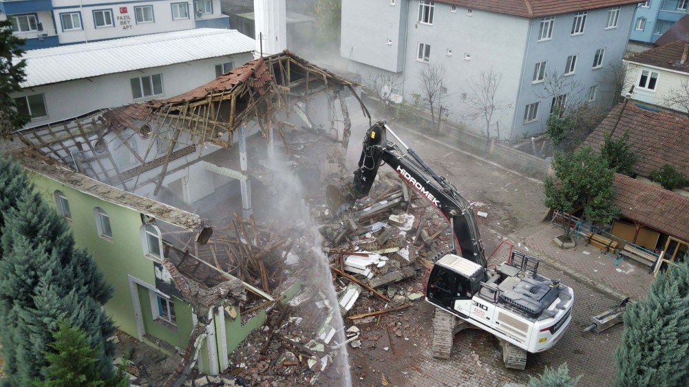 Düzce'de meydana gelen 5,9 büyüklüğündeki depremden etkilenen yapıların yıkımı sürüyor. Depremde ağır hasar alan Cumayeri ilçesindeki Ayşe Metin Cami'de yıkıldı. Yıkım çalışmalarına Cumayeri Belediye Başkanı Mustafa Koloğlu ve vatandaşlar katıldı. Bazı vatandaşlar ve Yaka Mahallesi Muhtarı Mustafa Çakır, yıkım çalışmaları sırasında duygu dolu anlar yaşadı.