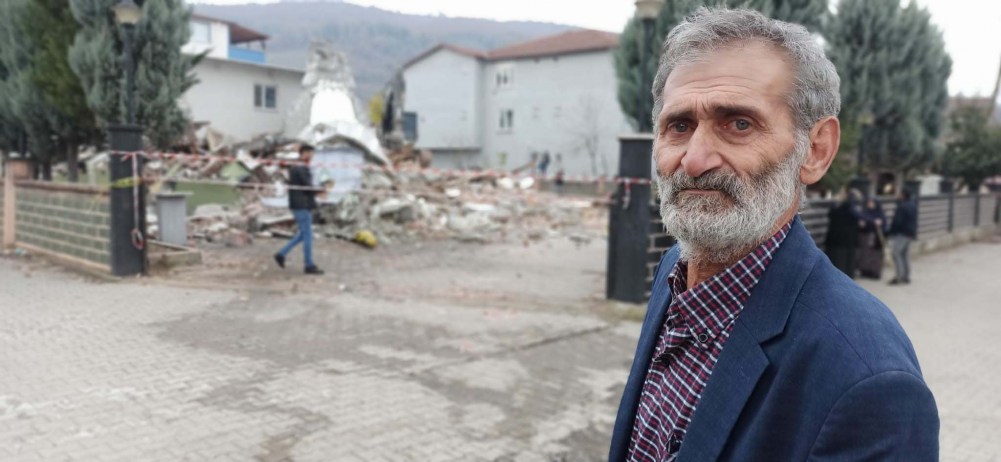 Düzce'nin Cumayeri ilçesinde depremde ağır hasar alan cami yıkıldı. 12 yaşından bu yana namaz kıldığı camiye "Evim gibiydi" diyen muhtar ise yıkım çalışmaları sırasında duygu dolu anlar yaşadı.
