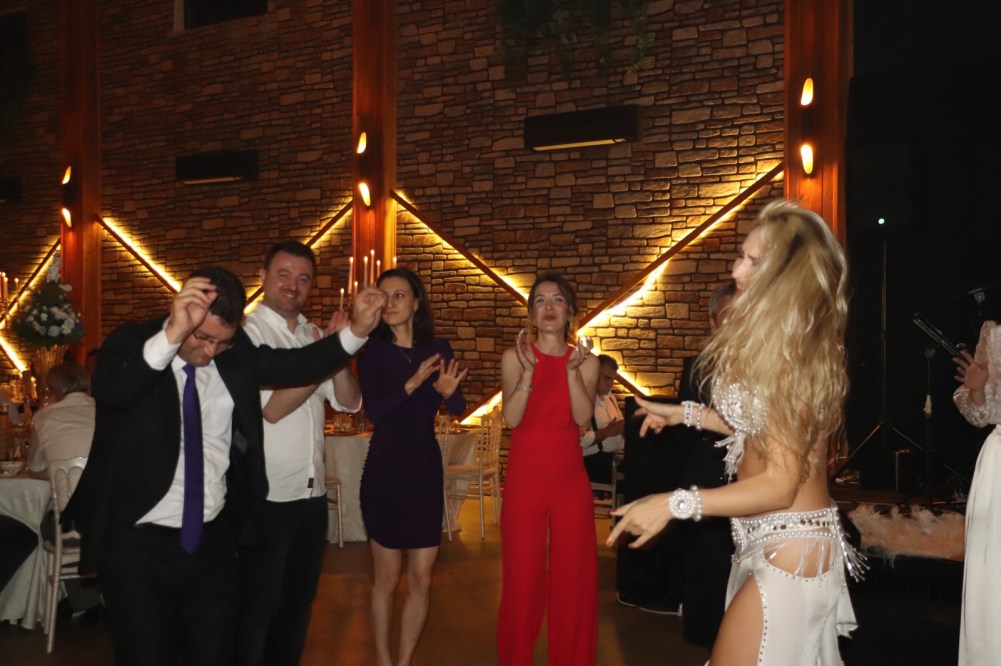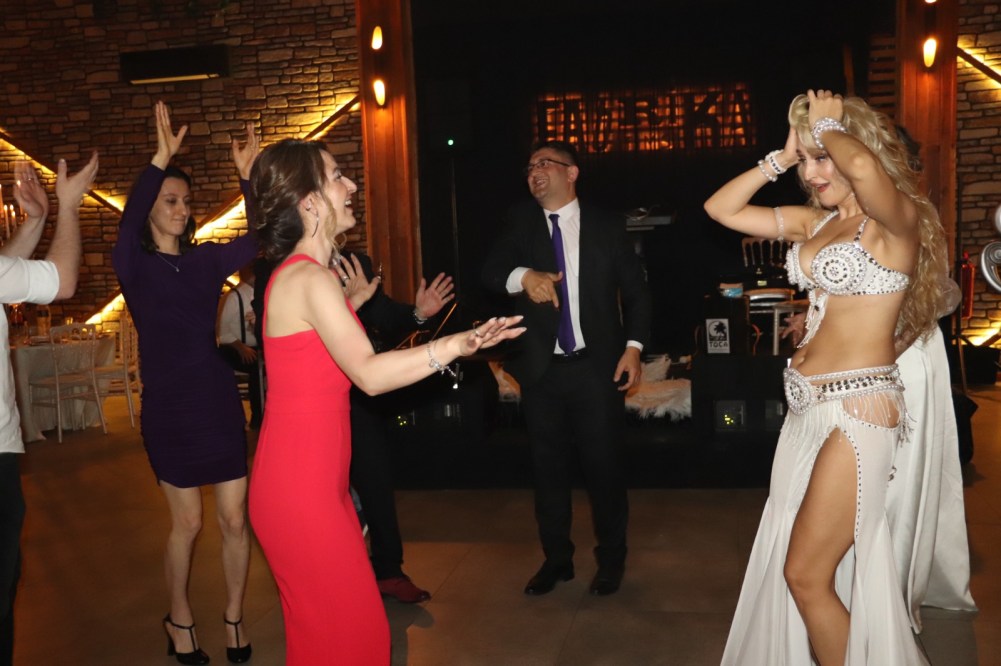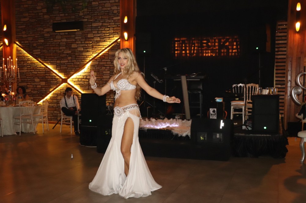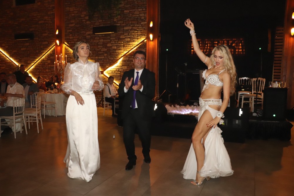 Ukrayna-Rus anne babanın kızı Olga, Türkiye’de sürdürdüğü dansözlük mesleğindeki tüm maharetlerini, Ahmet Ata’nın düğününde ortaya koydu.