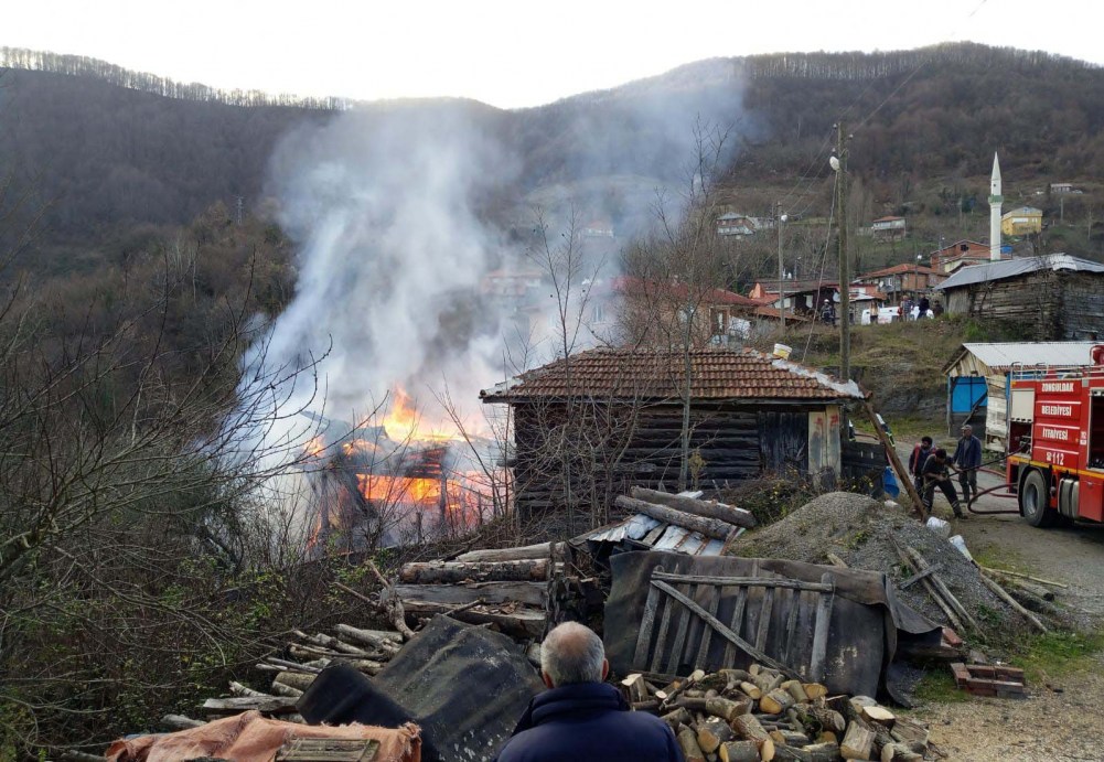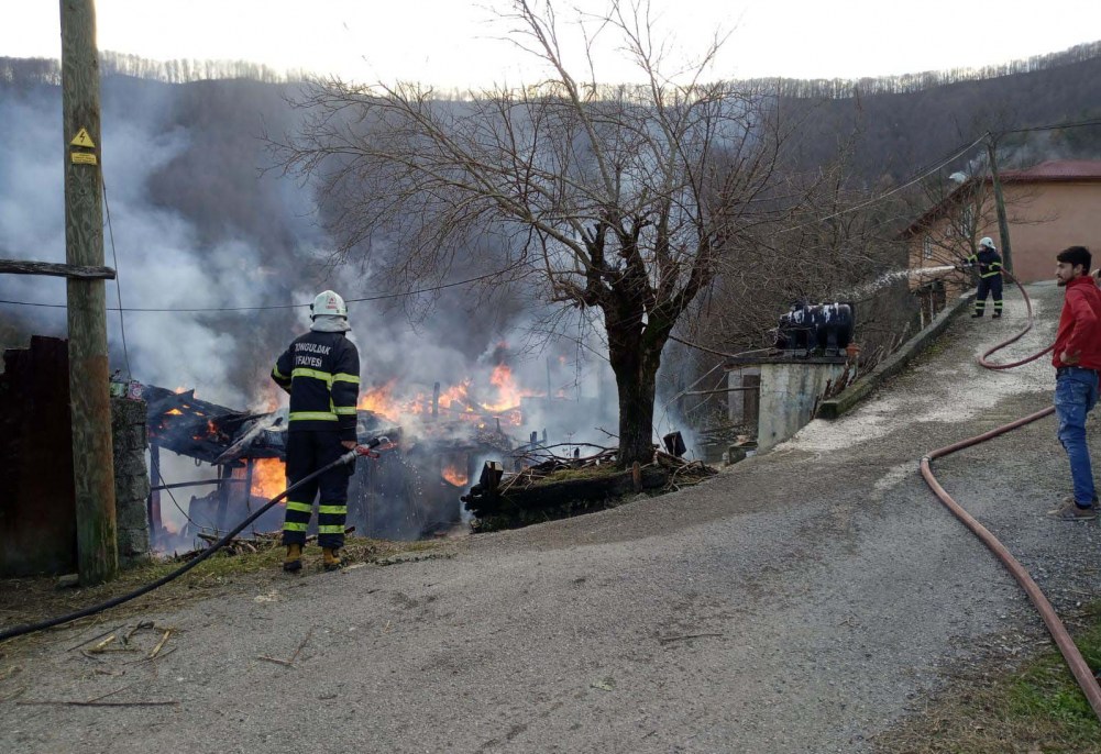 Zonguldak’ta Merkez’e bağlı Sarımsaklı köyünde, 3 kişinin yaşadığı ahşap tek katlı ev yangında kül oldu.