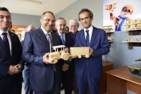 öğrencilerle birlikte ahşap oyuncakları ve yapım aşamalarını inceleyen Vali Ali