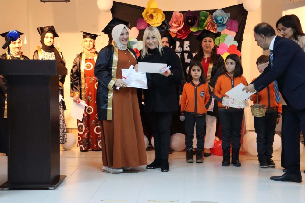 Milli Eğitim Bakanlığı tarından yürütülen “Aile Okulu” projesi doğrultusunda kursta eğitim alan velilere sertifikaları törenle verildi.