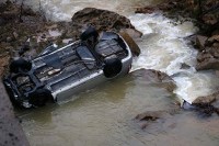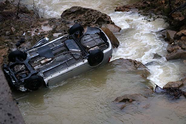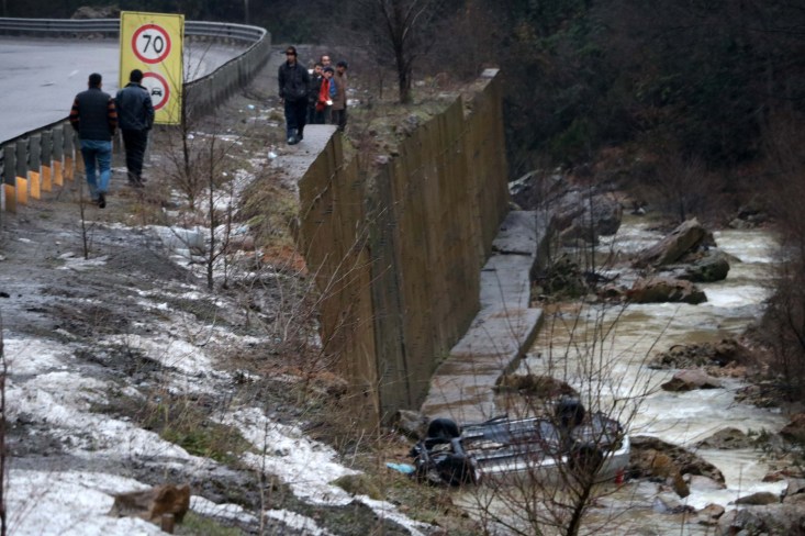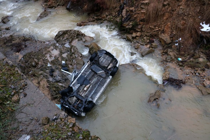 hakimiyetini kaybederek yaklaşık 10 metre yükseklikten aracıyla dereye uçtu.