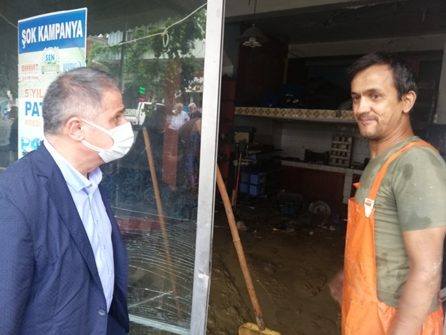 “Ormanlı beldemiz ile bazı köylerimizde büyük bir afet meydana geldi. Tabii böyle bir olayın olmasından dolayı son derece üzgünüz. Dün sabah erken saatlerden itibaren Ormanlı ve köylerimizi ziyaret ederek, afet sonrası ortaya çıkan manzaraları yerinde görüp, hasar tespit çalışmalarına başladık. Bugün de yine teşkilat yöneticilerimizle birlikte Ormanlı’dayız. Belediye Başkanımızla istişarelerde bulunduktan sonra sahadaki çalışmalarımıza devam ediyoruz. Ormanlı Beldemizde ve çevre köylerimizde yaşanan sel felaketinden zarar gören iş yeri sahibi ve vatandaşlarımızı ziyaret ederek, geçmiş olsun dileklerimizi iletiyoruz. Maalesef büyük bir afet meydana geldi. İnşallah bir daha olmaz. Devletimiz burada. Devlet Su İşleri, İl Özel İdare ve AFAD ekiplerimiz afetten zarar gören bölgelerimizde çalışmalarını sürdürüyor. Zarar tespit çalışmaları yapılıyor. Zararların giderilmesi noktasında devletimiz elinden geleni yapıyor. Devletimiz, tüm kurumlarıyla saha çalışmalarını titizlikle sürdürmektedir. Vatandaşlarımızın ihtiyaçlarını gidermek için var gücümüzle çalışıyoruz. Geçmiş olsun Ereğli.”