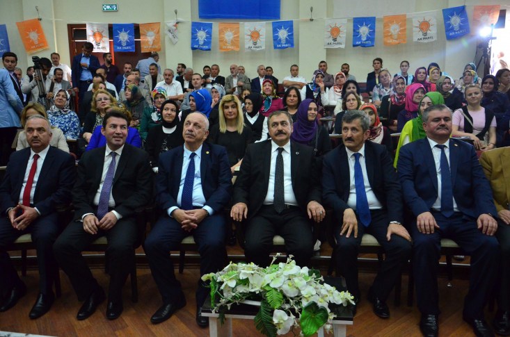 Eroğlu'nun da katılımıyla gerçekleştirilen toplantıda il başkanı, kadın kolları