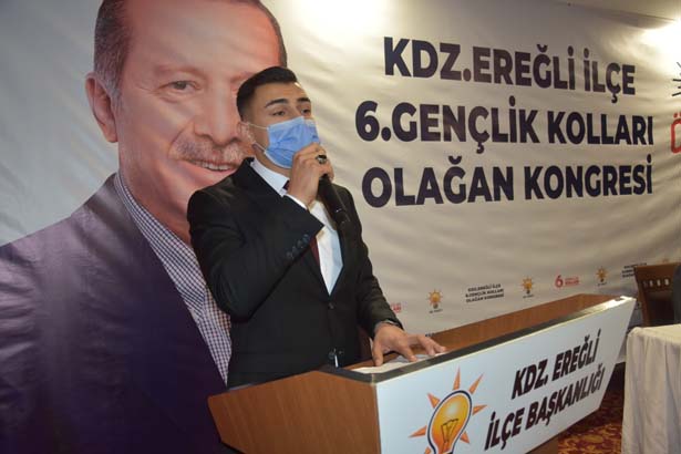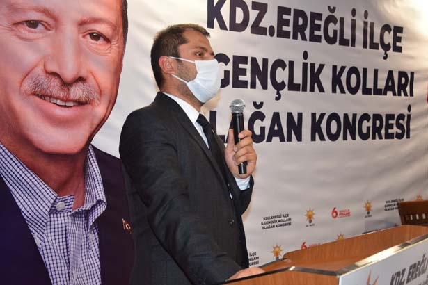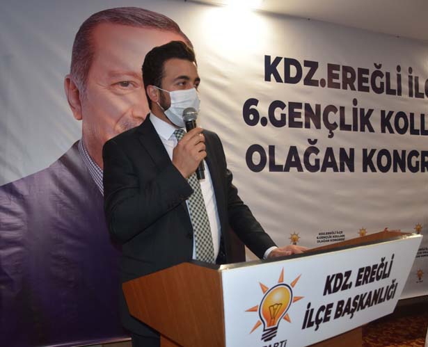 “Değerli dava arkadaşlarım sevgili gençler, bu ortam bugünlere kolay gelmedi. Büyük bedeller ödedik. Her karış toprağımızda şehitlerimizin kanı var. Başta vatan savunmasında şehit düşen asker ve polislerimiz olmak üzere alçak FETÖ kalkışmasında vefat eden 15 Temmuz şehitlerini, rahmet ve milletle anıyorum. Gazilerimize sağlıklı ömürler diliyorum. Terör örgütleri şunu iyi bilsinler ki; ‘Bizi asla bölemeyecekler’. Bu topraklarda kıyamete kadar ezan sesi dinmeyecek, al bayrağımız şanlı şanlı dalgalanmaya devam edecek. Ayrıca geçen hafta İzmir’de meydana gelen depremde hayatını kaybeden vatandaşlarımıza Allah’tan rahmet, yaralılarımıza da acil şifalar dilerim. Bugün gerçekleşecek kongre sonucu bayrağı devredecek olan Kdz. Ereğli Gençlik Kolları başkanımız Tekin Alabaş ve yönetim kurulu üyelerine de bugüne kadar partimize vermiş oldukları hizmetlerden dolayı teşkilatım adına teşekkür ediyorum. Yeni dönem için görev alacak Gençlik Kolları Başkanı Tunay Berber ve ekibine de çalışmalarında başarılar diliyorum. Hepiniz bizim için ayrı bir değersiniz. AK teşkilatın AK gençlerine tavsiyem okumalarınızı artırmanız, daha çok bilgi edinmek, topluma yön vermede farkınızı ortaya koymanızdır. Evet sevgili gençler bizlerin gençlik yılları kolay geçmedi. Sizler kadar şanslı değildik. Darbeler, yokluklar, kuyruklar, iç ve dış baskılara boyun eğmiş bir ülkede yaşadık. Milletimize boynu bükük olmayı ve kaybeden taraf olarak kalmayı alıştırdılar. 1980’ler, 90’lar, ekonomik krizler, koalisyon kavgaları ile geçti. Ülkemizin her hamlesi sekteye uğradı, yavaşlatıldı, durduruldu. Ta ki rabbimiz bizlere, ülkemize karşı kurulan tüm tuzakları bozan, zincirleri bozan, milletten aldığı güç ve destekle tüm vesayet odaklarını, darbe sevicilerini alt eden dünya lideri Sayın Cumhurbaşkanımız Recep Tayyip Erdoğan’ı nasip edene kadar. Onun liderliğinde her şey değişti, bundan sonra da değişmeye devam edecek. Bugün Cumhurbaşkanımız Sayın Erdoğan liderliğinde 2023 hedefleri için çalışıyoruz. 2053, 2071 vizyonunu oluşturma ve hayata geçirme misyonu sizlerin olacak. Yeni Erdoğanlar sizlerin arasından çıkacak, yük sizlerin omuzları üzerinde olacak. Sizlere inancımız ve güvencimiz tam. Sevgili gençler ve dava arkadaşlarım sizlerden bir söz istiyorum. Cumhurbaşkanımız ve genel başkanımız Recep Tayyip Erdoğan liderliğinde 2023 hedefleri için canla, başla çalışmaya hazır mısınız?”