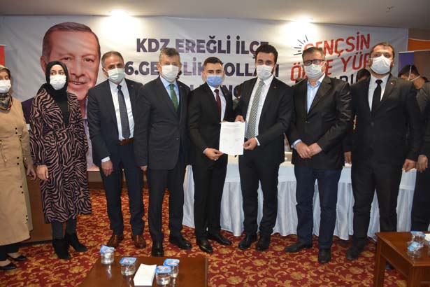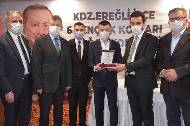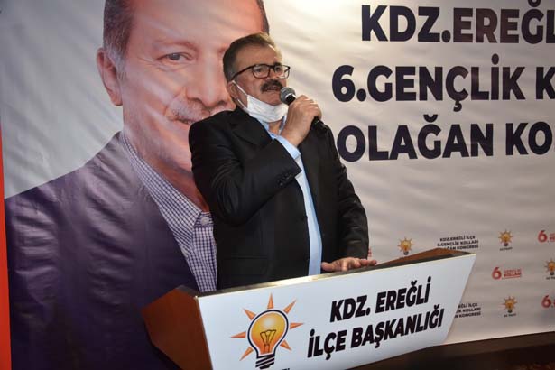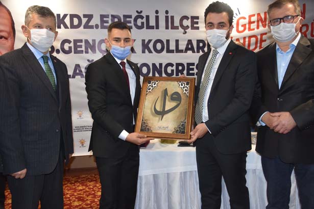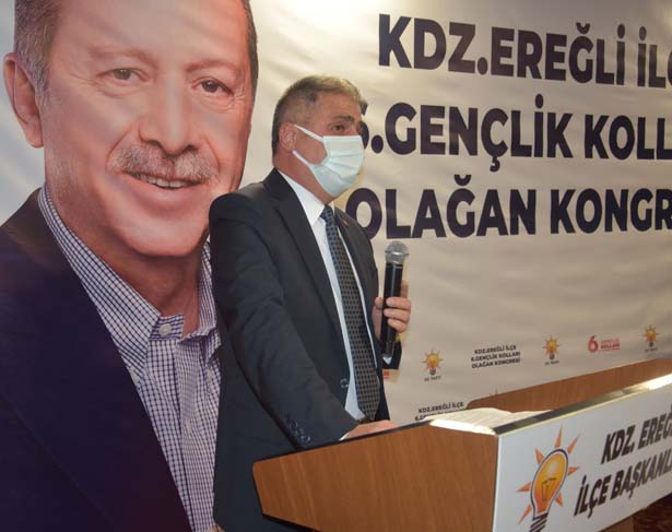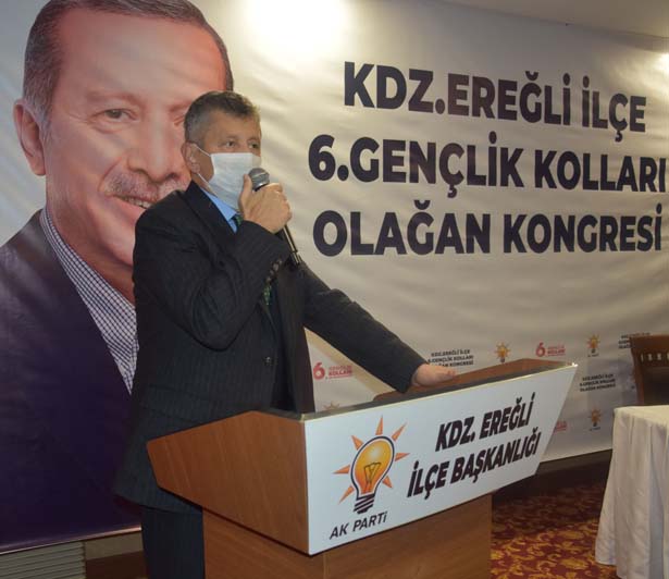 “İzmir’de geçtiğimiz günlerde bir deprem yaşadık, hayatını kaybedenlere Allah’tan rahmet, yaralılarımıza acil şifalar diliyorum. Biz teşkilat olarak Ankara’nın bizlere vermiş olduğu görevi yerine getirmeye çalışıyoruz. Buradan emeği geçen bütün kardeşlerime, ilçe başkanlığımıza, görev bırakan ilçe başkanlarımıza, teşkilata mensup arkadaşlarımıza teşekkür ediyoruz. Herkes görevini, görevi çerçevesinde en iyi şekilde yapmıştır ve bundan sonra da yapmaya devam edecektir. Çünkü partimizde görev bırakıldı, iş bitti diye bir şey yok. Onun için AK Partilik, AK Parti davasına inanmak, Recep Tayyip Erdoğan’ın yanında olmaktır. Bugün Ereğli’den kendisine ne kadar destek verebilirsek gücüne güç katmış oluruz. Bende Ereğli teşkilatının, yeni yönetimle beraber kaldığı yerden devam ederek güzel çalışmalara imza atacaklarına inanıyorum. İnşallah önümüzdeki günlerde bunun semerisin hep beraber göreceğiz. İlk başta, kaybettiğimiz belediyeyi çok çalışarak alacağız. Ben hepinize güveniyorum. Genç kardeşimizden Ereğli için bir söz istiyoruz. Ereğli’de 25.908 genç seçmenimiz var. Bunun 1.428’i bizim. Bu üye sayısı çok düşük. İnşallah gençlerden başlayarak yeni gençlik kolları yönetimimiz, limitin üzerinde üye yaparak gücümüze güç katacak. Ben arkadaşlarımıza güveniyorum. Kongreden hemen sonra hızlı bir şekilde çalışmaya başlamalarını Cumhurbaşkanımız adına onlardan istiyorum.”