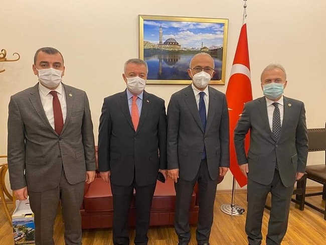 Ak Parti Zonguldak Milletvekilleri Polat Türkmen, Hamdi Uçar ve Ahmet Çolakoğlu ile birlikte Zonguldak Belediye Başkanı Ömer Selim Alan, Kozlu Belediye Başkanı Ali Bektaş’ın Hazine ve Maliye Bakanı Lütfi Elvan’ı makamında ziyaret ettikleri bildirildi.