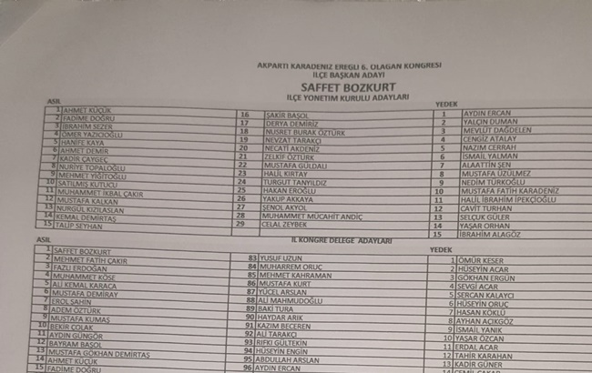 AK PArti Kdz.Ereğli İlçe Başkanlık listesi şu isimlerden oluştu...