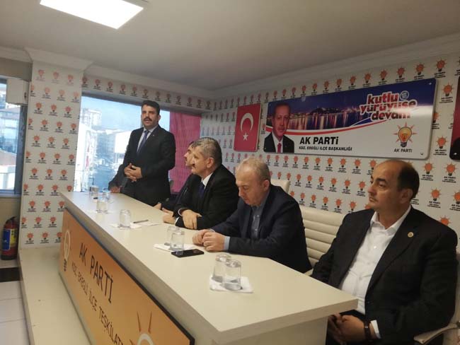 AK Parti Zonguldak Milletvekilleri Hamdi Uçar ile Ahmet Çolakoğlu ve Zonguldak İl Başkanı Zeki Tosun bu gün Kdz. Ereğli ilçesine gelerek parti teşkilatında düzenlenen istişare toplantısında partililerin talep ve şikayetlerini dinledi.