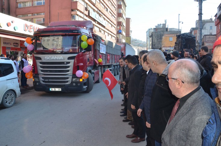 gönderilmek üzere iki tır yola çıktı.