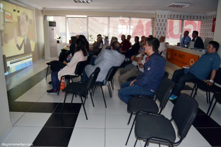 AK Parti'den bir dönem İl Genel Meclis Üyeliği yapan Av. Ahmet Köse tarafından slayt eşliğinde verilen eğitimleri, İlçe Başkanı Mehmet Fatih Çakır da yakından takip ediyor.