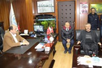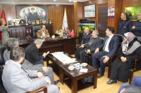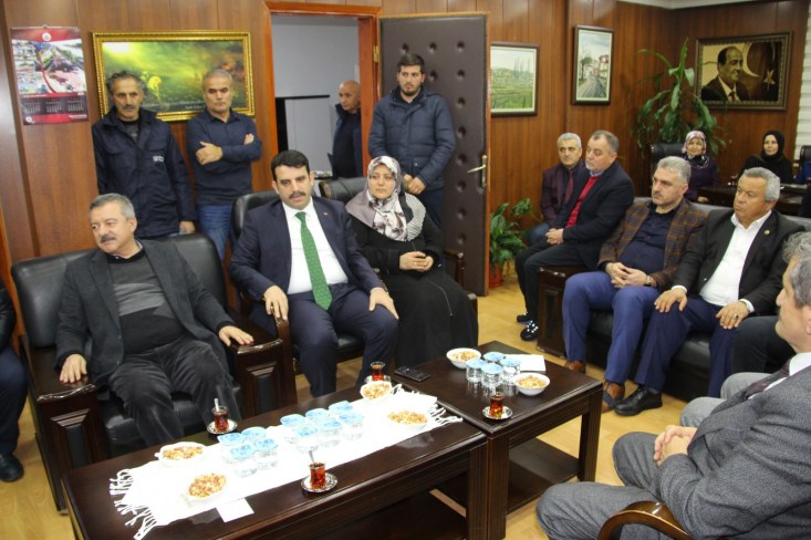 MİSAFİRLERİNİ BELEDİYE ÖNÜNDE KARŞILADI