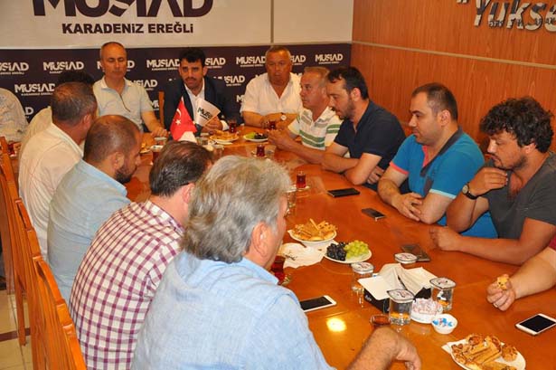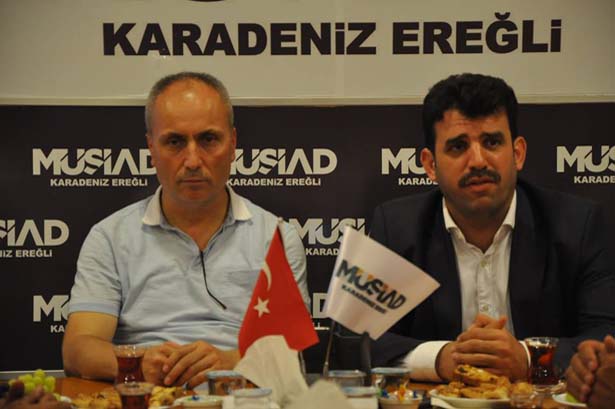 "15 Temmuz'da alçakça yapılan bir darbe girişiminin neticesinde Ereğli olarak bir duruş sergiledik. Bu sürece MÜSİAD olarak sizler de katkı sunduğunuzdan dolayı teşekkür ediyoruz. Tabi bu sadece AK Parti'nin bir sorunu değildi. Tüm milletin bir derdiydi. Bu derde karşı hep birlikte elimizde Türk Bayrakları ile hiçbir siyasi düşünce ayrımı gözetmeksizin karşı duruş sergiledik. Allah bir daha böyle durumlar bize yaşatmasın. Bu yaşadığımız olay birlikte olmayı, millet olmayı bize bir kez daha öğretti. Artık aramızdaki ufak tefek fikir ayrılıklarına bakmadan birbirimizi daha fazla sevebileceğimizi gördük."