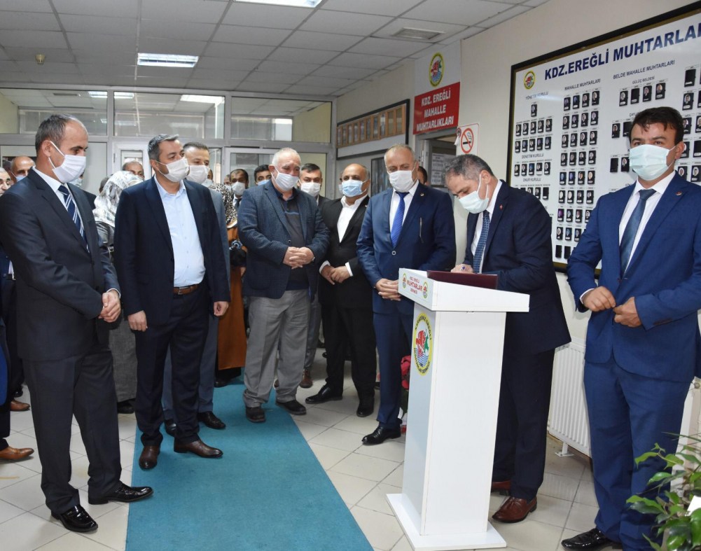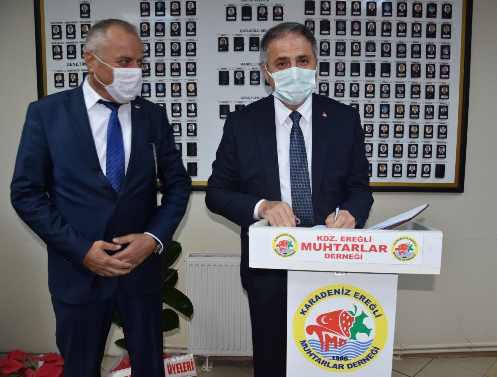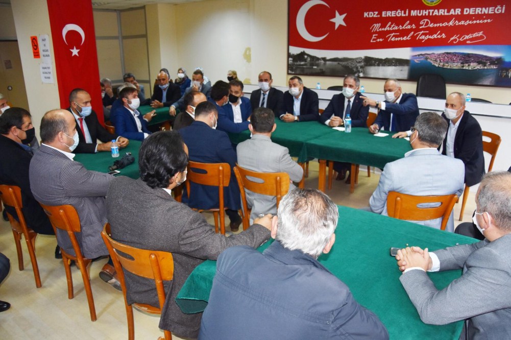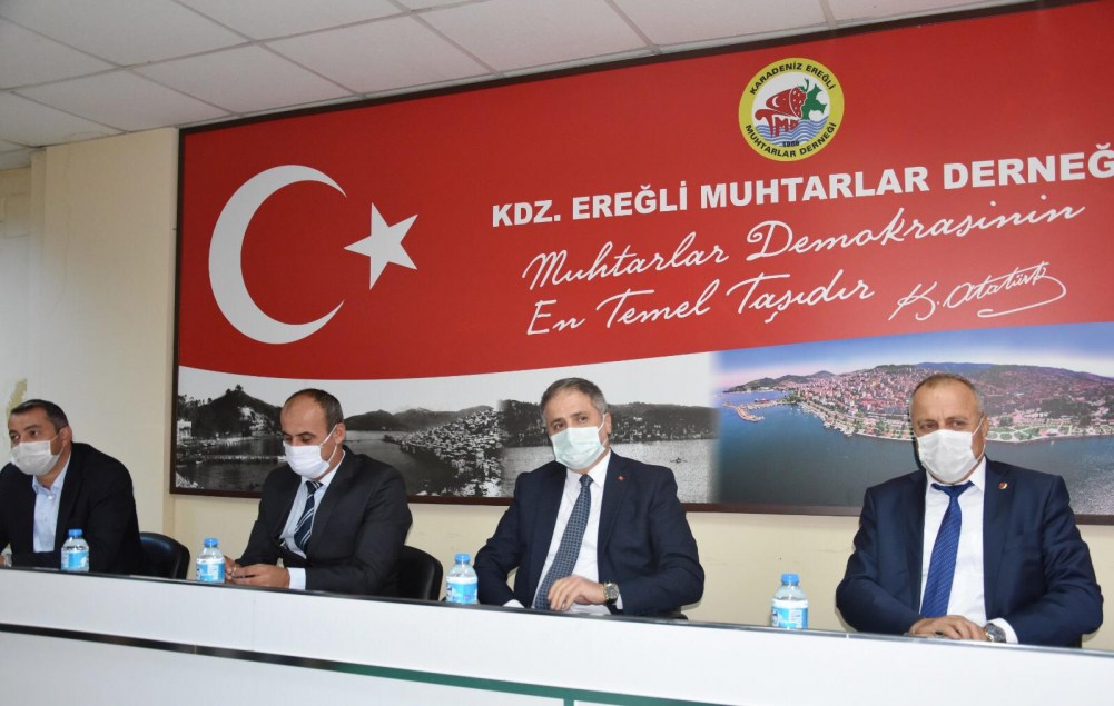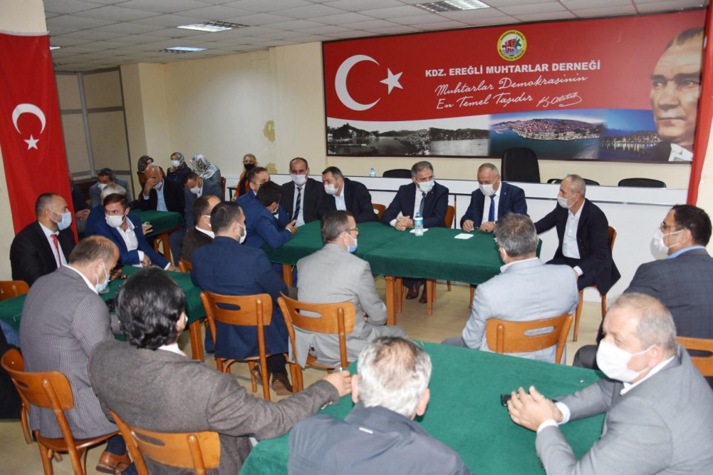 Ziyarette konuşan Muhtarlar Derneği Başkanı Şükrü Kılıç, “Ereğli menfaatleri doğrultusunda kim taş üstüne taş koyarsa başımıza taç yaparız” dedi.