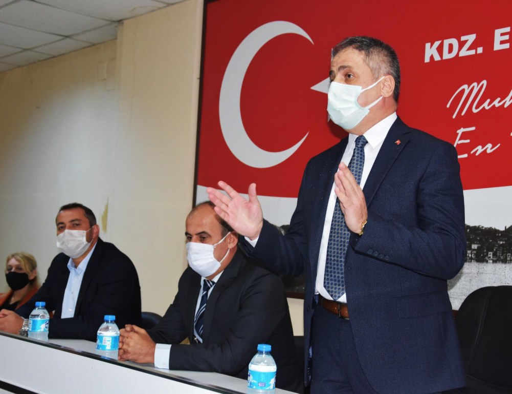 “Değerli Muhtar arkadaşlarım, öncelikle Muhtarlar Günü’nüzü kutluyorum. İnşallah bundan sonraki süreçte AK Parti İlçe Teşkilatı olarak birlikte görev yürüteceğiz, beraber çalışacağız. İlçe Başkanı olarak ben, Yönetim Kurulu Üyesi arkadaşlarım, belde teşkilatlarımız, mahalle ve köy temsilcilerimiz bundan sonra hepimiz sizlerin emrindeyiz. Sayın Cumhurbaşkanımızın ve Hükümetimizin Muhtarlarımıza bakış açısı belli. 2002’de iktidara geldikten sonra Muhtarlara verilen değer ortada. Kdz. Ereğli İlçe Teşkilatı olarak bizler de yerel anlamda bu değeri gösterme noktasında üzerimize ne düşüyorsa bunu ifa etmek için elimizden geleni yapacağız. Bundan kesinlikle emin olunuz. Gece saat 3,4,5,6, sabah 7 fark etmez; 24 saat sizlerin emrindeyiz. Tabii ki yaşanan pandemi süreci ekonomiyi de olumsuz etkiledi. Siz değerli Muhtarlarımızın sorunlarını mümkün mertebe giderme noktasında İl Genel Meclisi Üyesi arkadaşlarımızla beraber elimizden gelen çabayı göstereceğimizden de emin olunuz. Bundan sonraki süreçte beraberiz, birlikte Ereğli’yi yönetmeye talibiz. Sorunların giderilmesi noktasında elimizden geleni yapacağız. Bu ziyaretlerden rahatsız olanlar var ama bu ziyaretler bize olan teveccühü gösteriyor, bize olan inancı ortaya koyuyor; bu anlamda kimse rahatsız olmasın. Çünkü gerçekten halkımızın, Ereğli’nin bize karşı bir teveccühü var, biz bunu görüyoruz. Bu teveccühe layık olma noktasında da elimizden geleni yapacağız. Daha 1 aylık İlçe Yönetimiyiz, tabii ki önümüze bakacağız. Ereğli için üzerimize ne düşüyorsa elimizden geleni yapma noktasında tüm çabayı sergileyeceğiz. Bundan kimsenin kuşkusu, şüphesi olmasın.”