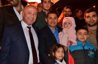 AK PARTİLİ KALABALIK MADENCİ ANITI ÖNÜNE GELEREK KUTLAMALAR YAPTI