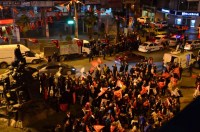 binasının yakınında bulunan alanı doldurarak seçim müzikleri eşliğinde