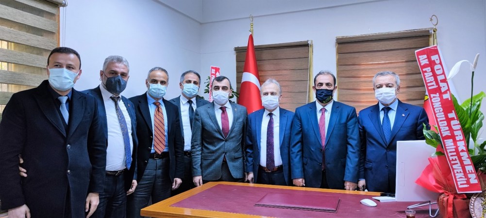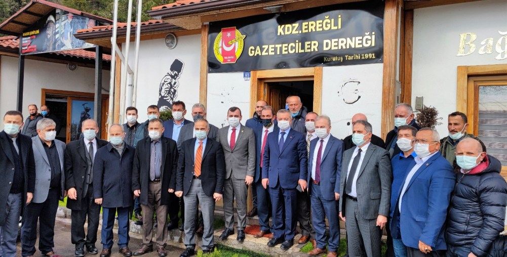 Zonguldak Ak Parti Milletvekilleri Polat Türkmen, Ahmet Çolakoğlu ve Hamdi Uçar beraberindeki heyet ile birlikte Ereğli Gazeteciler Derneği Başkanı Şafak Erel ve yönetimine ‘Hayırlı Olsun’ ziyaretinde bulundu.