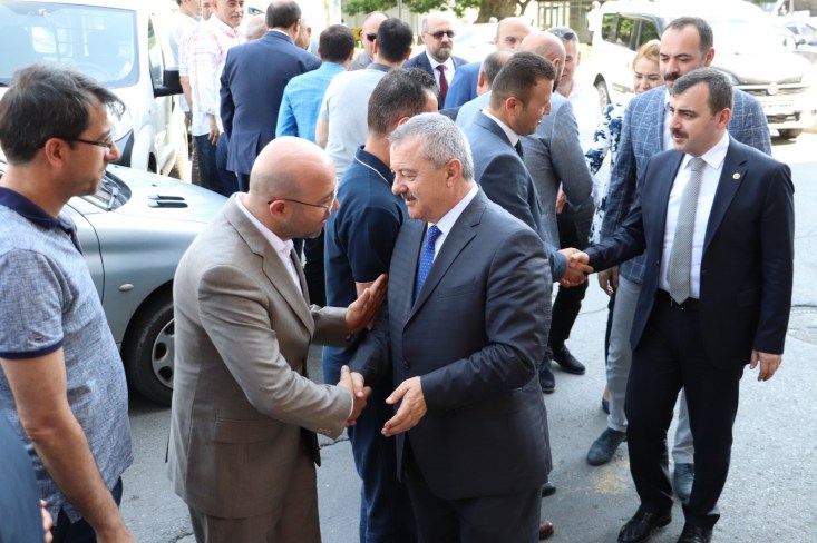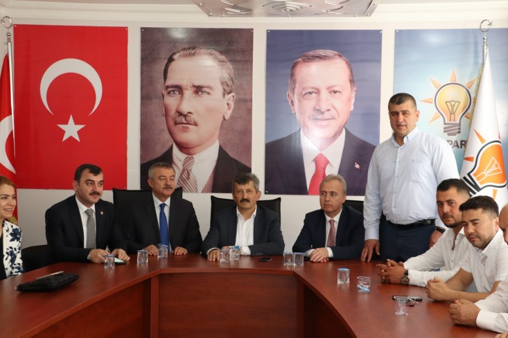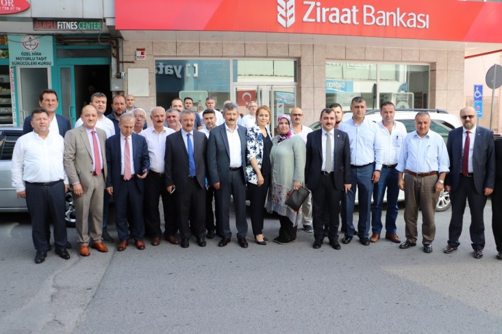 ve Ahmet Çolakoğlu, beraberinde İl Başkanı Zeki Tosun ve Partililerle birlikte