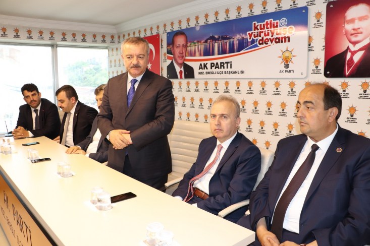 ilk olarak Ereğli ilçe başkanlığında düzenlenen bayramlaşma programına katıldı.