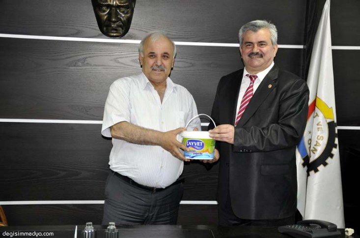 Konuşmalar sonrasında TSO Başkanı Sarsık, Çaturoğlu'na Çaycuma yöresine ait Manda yoğurdu hediye etti.