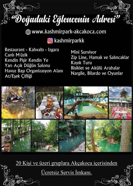 Akçakoca'da doğa harikası bir noktada, aileniz ve sevdikleriniz ile doyasıya eğlenebileceğiniz bir mekan Kashmir Park.