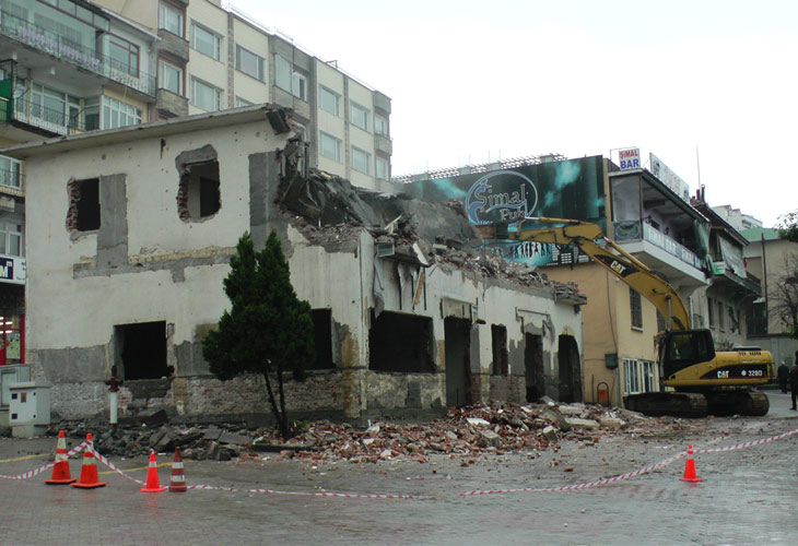 Akçakoca Belediyesince eski PTT binasında başlatılan yıkım çalışmaları devam ediyor.