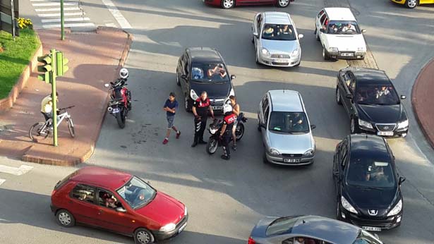 Zonguldak'ın Ereğli ilçesinde şehir merkezinde akrobasi hareketler yapan motosiklet sürücüsü Yunus ekiplerinden kaçamadı.