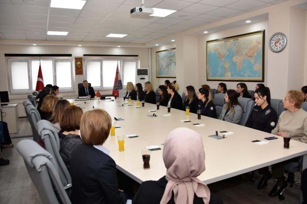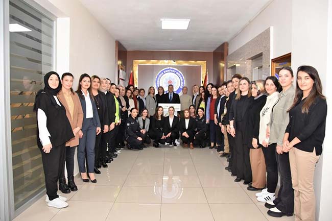 Günün önemine binaen İl Emniyet Müdürü Fahri Aktaş yaptığı konuşmada “ Öncelikle 6 Şubat’ta Kahramanmaraş merkezli 10 İlimizi derinden etkileyen deprem felaketinde hayatını kaybeden vatandaşlarımızı, meslektaşlarımızı rahmetle anıyorum, yaralılara acil şifalar diliyorum. Toplumun yapı taşı ailede eş ve anne olmanın sorumluluğu yanında Türk Polis Teşkilatının şerefli bir mensubu olmanın da omuzlarınıza yüklediği manidar ama kutsal bir yük var. Sizlerin kıymetini sadece 8 Martlarda, ya da Anneler gününde hatırlamak bizlere yakışmaz. Çünkü bizler 'cennet annelerin ayakları altındadır' akidesine teslim olmuş inançlı, imanlı insanlarız. Yılın her günü her saati velhasıl hayat boyu annelerimizi, eşlerimizi, hanımefendileri baş tacı ederek onlara hak ettikleri değeri, sevgiyi ve saygıyı somut bir şekilde göstermeliyiz. Bu vesileyle başta aziz şehitlerimiz ve kahraman gazilerimizin değerli anneleri ve eşleri olmak üzere tüm kadınlarımızın 8 Mart Kadınlar Gününü kutluyorum” dedi.