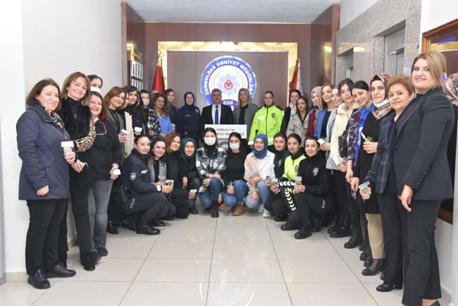 Zonguldak İl Emniyet Müdürü Fahri Aktaş, 8 Mart Dünya Kadınlar günü kapsamında hizmet binasındaki kadın polislerin kadınlar gününü kutladı. Aktaş, bütün kadın polislere çiçek takdim etti. Zonguldak İl Emniyet Müdürü Fahri Aktaş, “Ailenin hamurunu karan, mayasını veren ise çok kıymetli hanımefendilerdir, eşlerimizdir. Eş olarak kocasına anne olarak evlatlarına çocuklarına karşı sorumluluklar taşıyan hanımefendilerin aynı zamanda polis olarak da kutsal bir meslek grubu olmanın gururu onurunu yaşayan yükü ağır ama sevgi ve şefkati sonsuz değerli bayan personelimizin 8 Mart Dünya Kadınlar gününü tebrik ediyorum. Eşleriyle anne ve babalarıyla çocuklarıyla sağlıklı huzurlu ve mutlu bir ömür diliyorum” dedi.