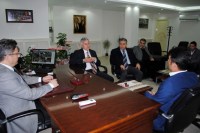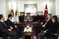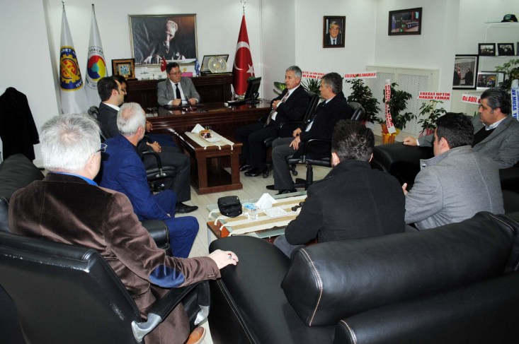 Ticaret ve Sanayi Odası Başkanlığı makamında gerçekleşen ziyarette, Akyüz ve ekip arkadaşlarını Oda Başkanı Sertan Yalçın, Başkan Yardımcıları Mehmet Çivici ve Abdülkadir Çınar karşıladı.