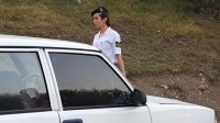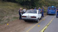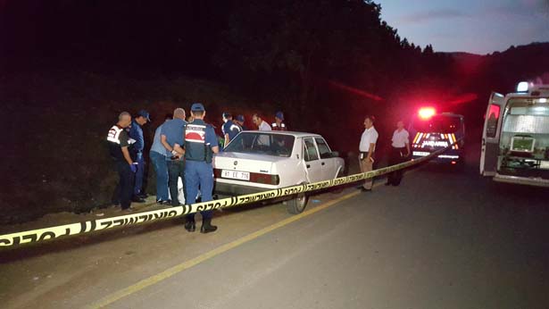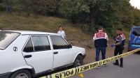Düzce'de ormanlık alan yanındaki yol kenarında araç içinde