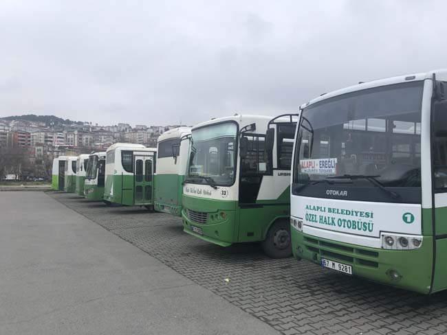 Alaplı ile Kdz. Ereğli arasında ve İlçe şehir içi toplu taşıma işini yürüten Alaplı Özel Halk Otobüsleri Kooperatif Başkanı Sedat Aydın, 65 yaş üstü ücretsiz biniş kartlarının iptal edildiğini söyledi. Toplu taşımada yolcu kapasitesinin son bir haftada yüzde 70 oranında azaldığını dile getiren Aydın “Alaplı Belediyesi ile birlikte koordineli çalışarak otobüslerimiz düzenli olarak dezenfekte ediliyor. 65 yaş üstü ücretsiz biniş kartları iptal edildi. 65 yaş üstündeki vatandaşlarımızdan sokağa çıkma yasağına rağmen ücretli binip yolculuk yapmak isteyenler oluyor. Bunlara da uyarmaya çalışıyoruz. Yolcu sayısının yüzde 70 oranında düşmesi ile sefer sayılarımızı da azaltma kararı aldık. Devletimizin ilgili birimlerinin aldığı kararları uygulayarak çalışmalarımızı sürdürüyoruz. Salgının yayılmasını önlemek maksadıyla alınan tedbirleri bizlerde harfiyen uyguluyoruz” dedi.