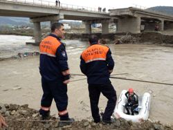 Çaycuma?da Filyos Çayı üzerinde bulunan köprünün çökmesi sonucu çaya düşen minibüsteki 15 yolcuyu arama kurtarma çalışmalarına Alaplı İtfaiyesi de, İstanbul İtfaiyesi ile birlikte oluşturduğu 9 kişilik bir ekiple destek veriyor.