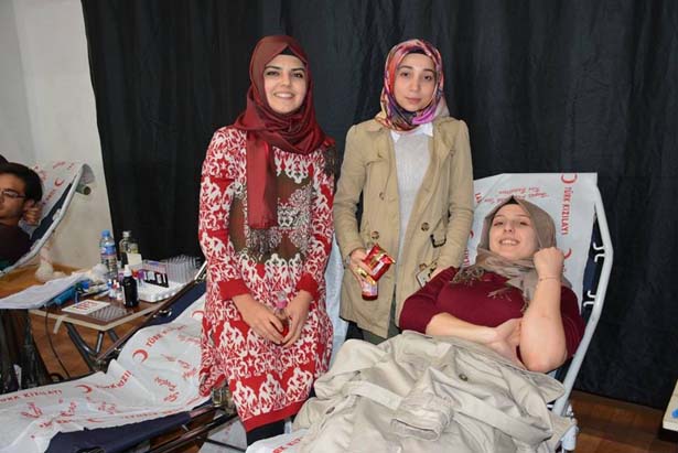 verildi. Okul içinde düzenlene kan bağışı kampanyasına kız öğrenciler yoğun
