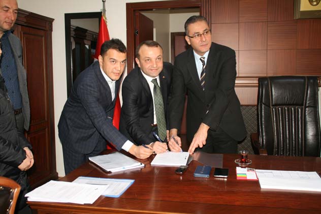 İmza töreni sırasında, Alaplı OSB Müdürü Özkan Demir, İşadamı Halil Demiray ve noter yetkilisi de hazır bulundu.