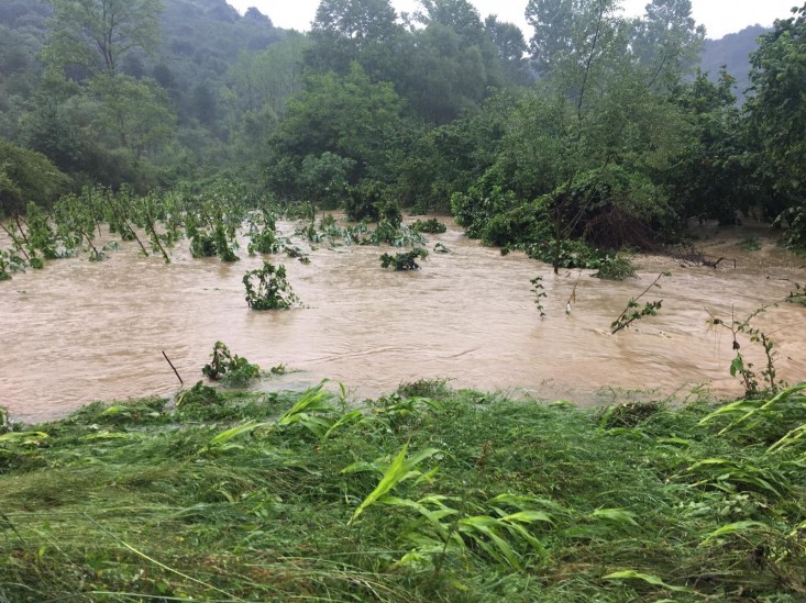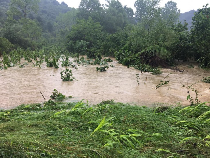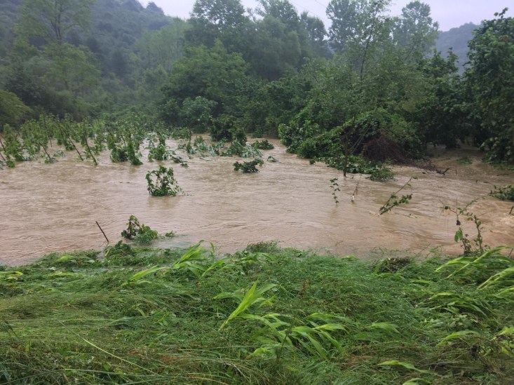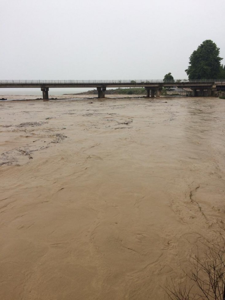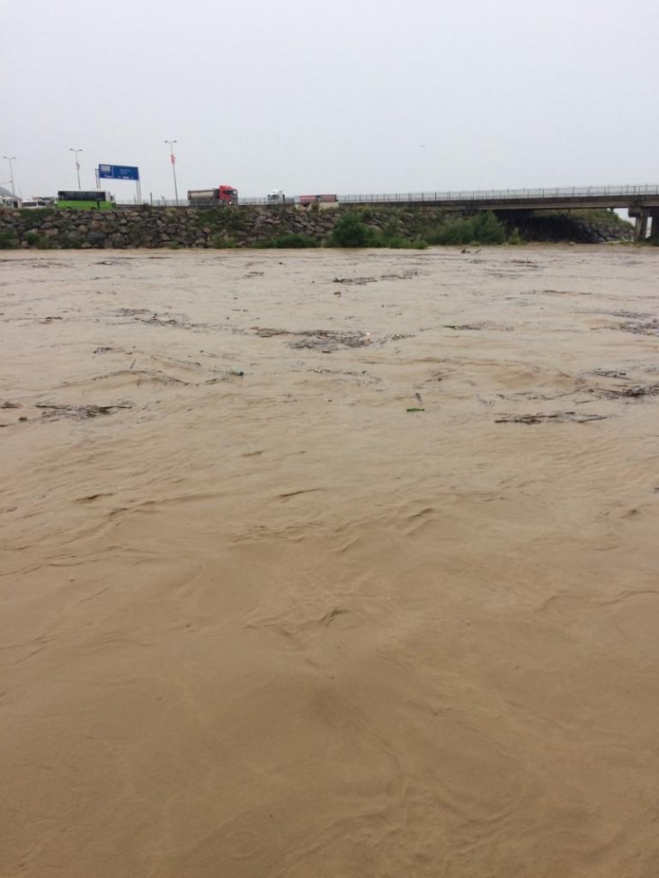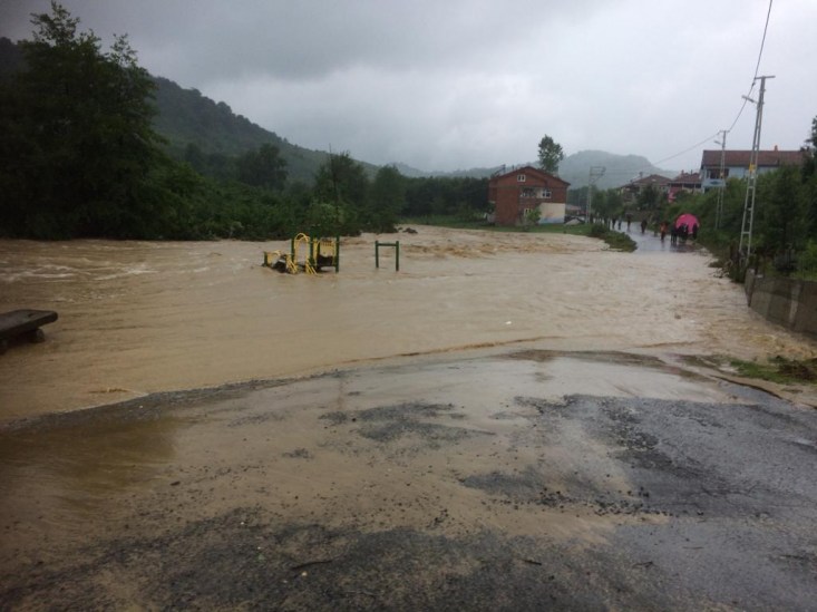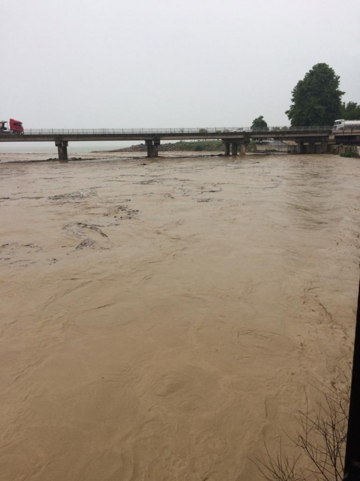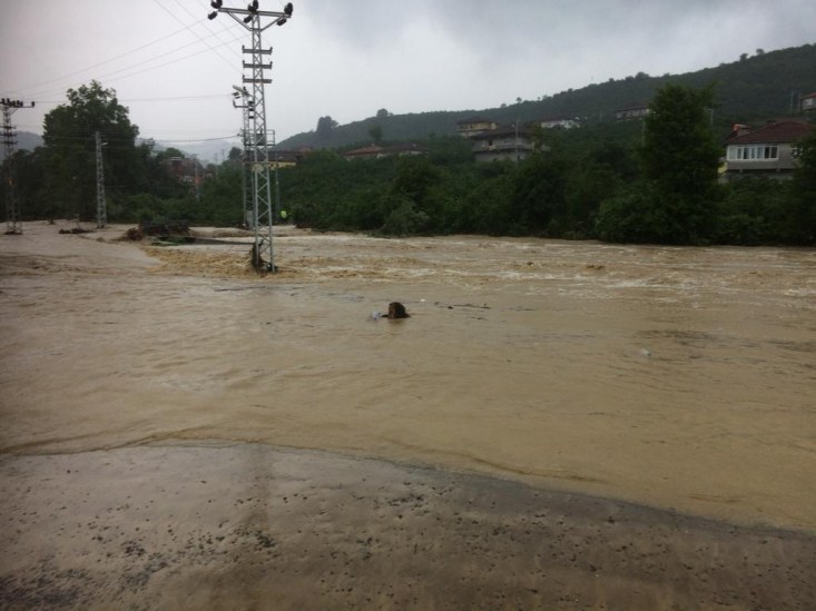 Alaplı'da aşırı yağışlar nedeniyle ilçenin ortasından geçen Çayın su seviyesinin kritik seviyeye ulaşması üzerine köprü ulaşıma kapandı. vatandaş ve esnaf, sel nöbeti tutmaya başladı.