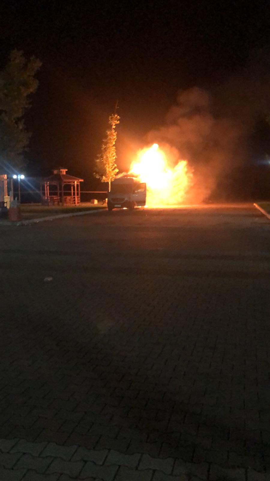 HAVAİ FİŞEK ARACI ALEVLER İÇİNDE KALDI