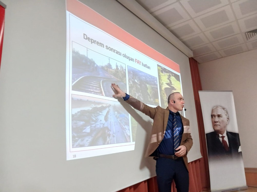 6 Şubat 2023’te meydana gelen Kahramanmaraş merkezli depremlerin üçüncü yılı dolayısıyla düzenlenen seminere, Alaplı Belediyesi İtfaiye Müdürü Sinan Taşkın konuşmacı olarak katıldı.