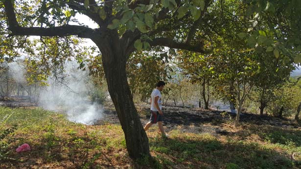 Yangın, Ahiler köyü altı mevkisinde N. A.'ya ait fındık bahçesinde çıktı. N. A., fındık tarlasından topladığı yabani otları yakmak isterken rüzgarın etkisiyle artan alevler bir anda çevredeki fındık tarlasına sıçradı.