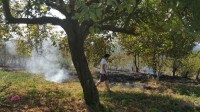 Zonguldak'ın Alaplı ilçesinde bir fındık bahçesinde çıkan yangında yaklaşık 2 dönümlük arazi zarar gördü.