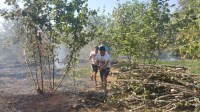 tarlasını saran yangının büyümesi üzerine çevredeki vatandaşlar tarafından