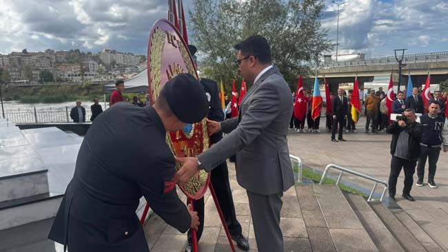 Tören, Alaplı Kaymakamı Selçuk Köksal’ın anıta çelenk sunmasıyla başladı. Ardından saygı duruşunda bulunuldu ve İstiklal Marşı okundu.
