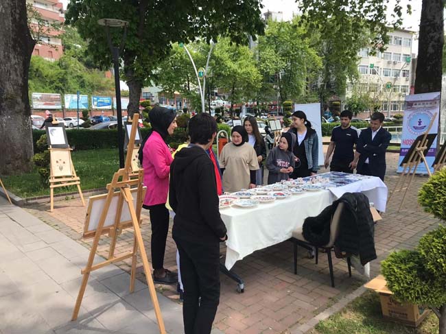 Alaplı Gençlik ve Spor İlçe Müdürü Hasan Demir ve beraberindekiler Öğrenciler ile vatandaşlar, Halk Eğitim Merkezi işbirliğiyle gerçekleştirilen Alaplı Gençlik Merkezi kurslarının yaptığı ,Karakalem ve Akrilik çalışmaları, Ebru sanatına, Boyama sanatında Çini sanatına kadar birçok ürün Atatürk Anıt Alanında ziyaretçilerin beğenisine sunuldu.