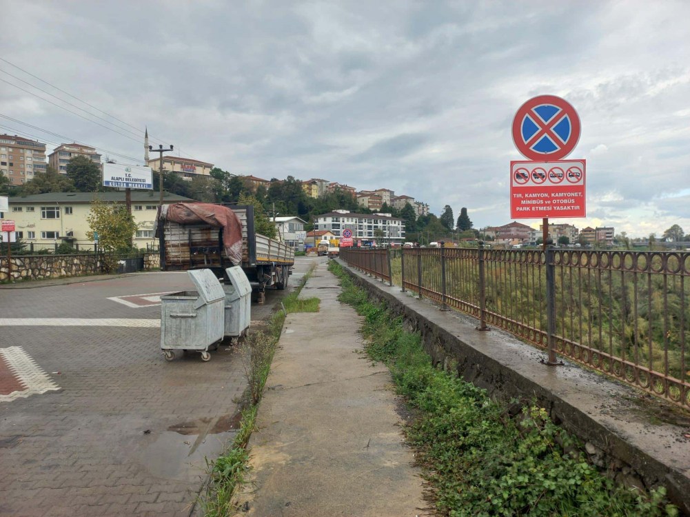 Zonguldak'ın Alaplı ilçe genelinde büyük araçların gelişi güzel park edilmesine karşı cezai işlem uygulanmaya başlandı