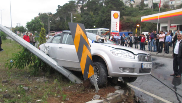 Kaza, 17.10.1013 Perşembe günü Alaplı'da Üçler Petrol yanındaki kavşakta meydana geldi. Akçakoca istikametinden Kdz. Ereğli istikametine giden E.E. yönetimindeki 81 DS 082 plakalı otobüs, siteler mevkisinden gelerek petrol istasyonun yanından kavşağa çıkan A.Y. (49) yönetiminde 81 ER 920 plakalı otomobille çarpıştı. Çarpmanın etkisiyle orta refüje savrulan otomobil aydınlatma direğine çarparak durdu. Kazada otomobil sürücüsü A.Y., otomobilde bulunan H.Y. (40) ve Ö.Y. (11) yaralandı. Yaralılar sağlık ekiplerince Kdz.Ereğli Devlet Hastaneleri'ne sevk edildi. Kaza nedeniyle yol geçici olarak trafiğe kapatılırken, araçların çekici yardımıyla bulunduğu yerden kaldırılmasının ardından trafik normale döndü. Kazayla ilgili soruşturma sürüyor.