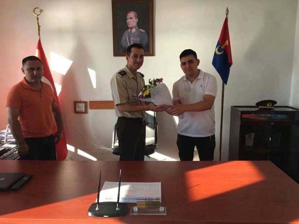 Kdz. Ereğli ve Alaplı'da görev yapan Özel Güvenlik çalışanları adına Kaan Bostancı, Sefa Yokarıbaş, Eray Türkoğlu'nun katıldığı ziyarette Kaan Bostancı, Alaplı Jandarma Komutanı Üsteğmen Fuat Gencer'e çiçek takdim etti.