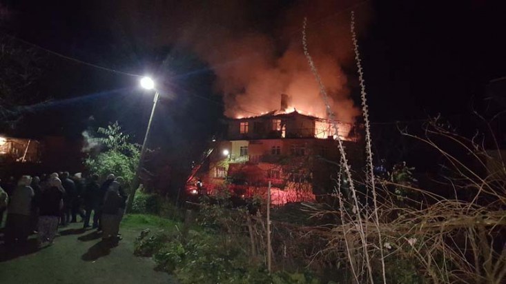 Zonguldak Alaplı ilçesindeki Aşağı Tekke Köyündeki bir evde henüz belirlenemeyen nedenle çıkan yangında çatı katı ev tamamen yanarak kullanılamaz hale geldi.