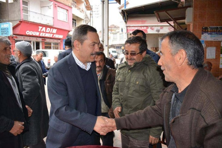Mollabey'de bulunan kasaplar, ekmek fırınları, kahvehaneler ve tüm iş yerlerini tek tek gezen Başkan Uysal, İlçe Başkanı Mustafa Yavuz ve beraberindeki teşkilat yöneticileri daha sonra pazarcı esnafını da ziyaret etti.